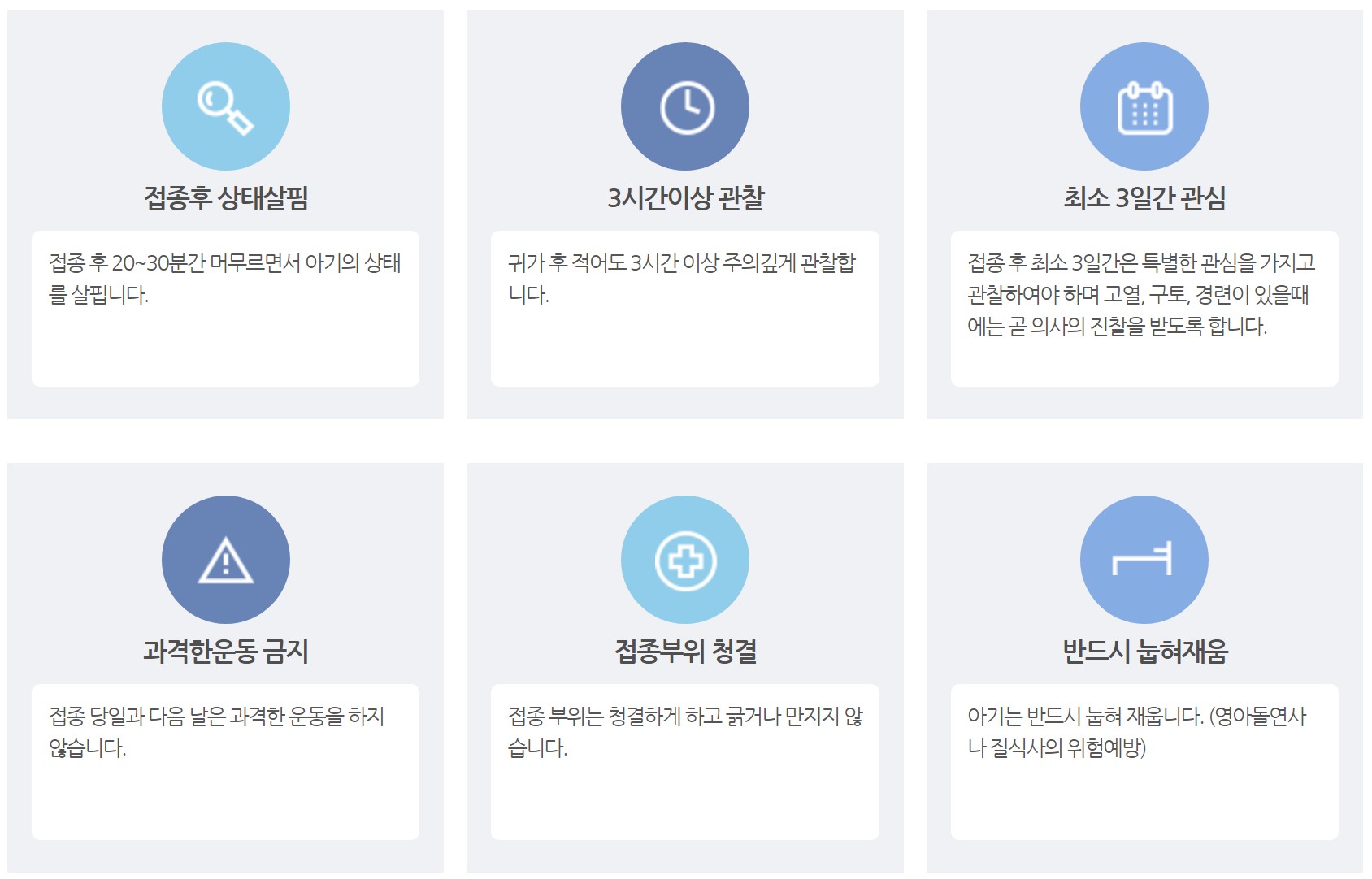 * 예방 접종 후 충분한 휴식을 취해주는 것이 좋습니다.